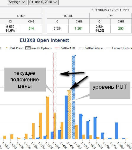 As an example, we can take the situation in the weekly standard EURUSD options, on Friday (the report is late for a business day), which registered a fall below the maximum PUT interest.