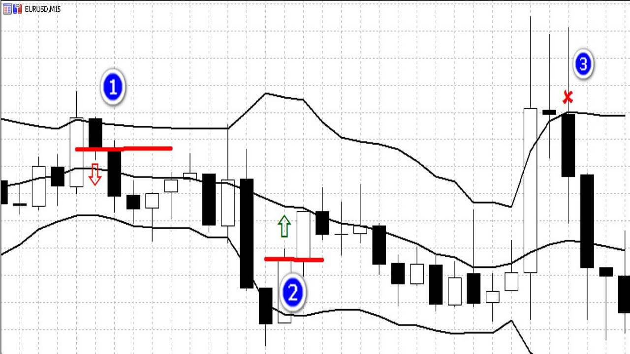 The specificity of the third and last strategy with the use of Bollinger is associated with binary options of the type «with touch / without touch». High payments for binary options of this type are due to the fact that it is necessary to predict whether the price will touch the boundaries of a certain interval or not.