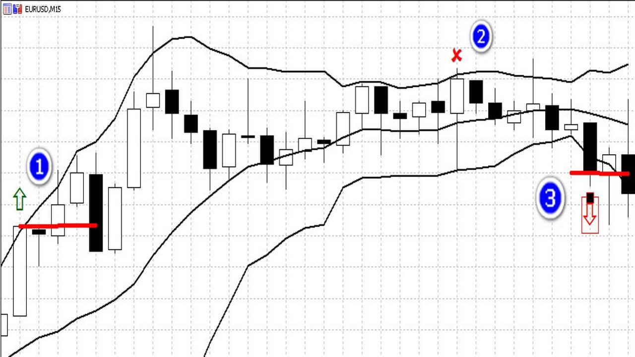 Let’s stipulate one indispensable condition. The opening price of a candlestick must be located behind the Bollinger Band, and the closing price must be in the channel. In the case discussed above (Fig. 10), the price returned to the channel in both cases after our entry. But only the second return served as a signal for the trade.