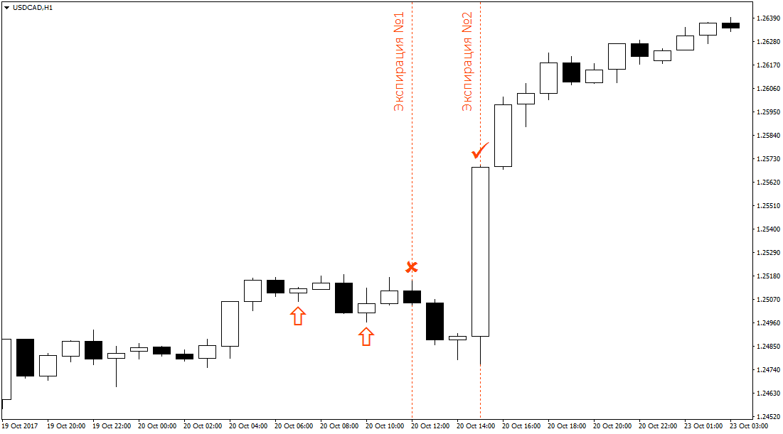 In this case, without waiting for expiration , you can enter again in the same direction and expiration time, but at a more favorable price and increased volume. That is, the signal of relevance has not lost, but we entered too early. By re-entering at a better price, we still get a well-deserved profit.