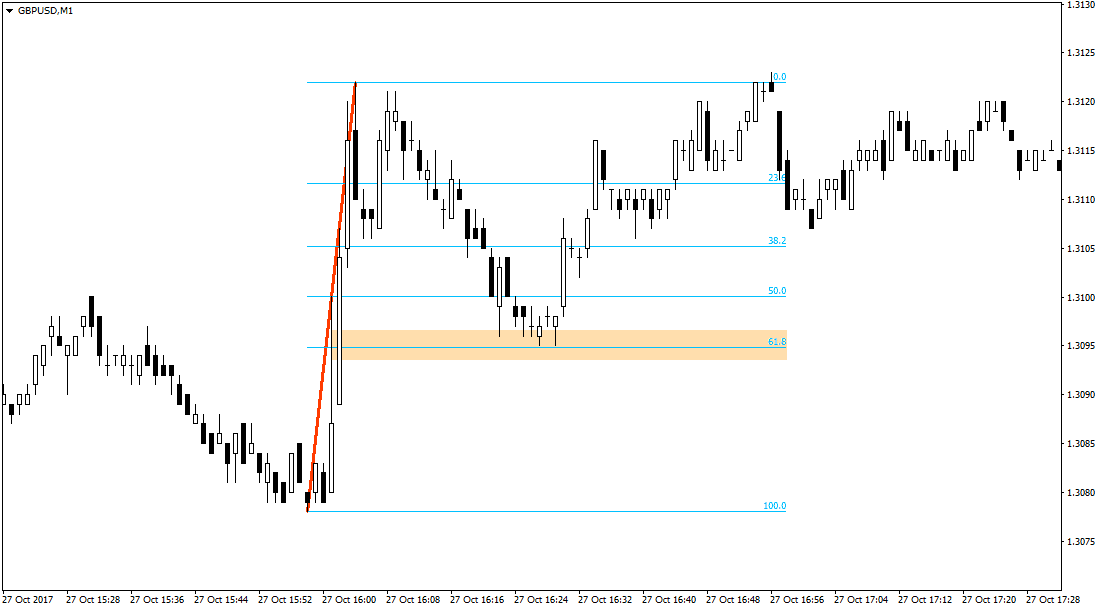 EURUSD, minute timeframe . Despite the rather small period, even here the Fibonacci levels work out quite well. In this case, the price bounced exactly from the 61.8% level.