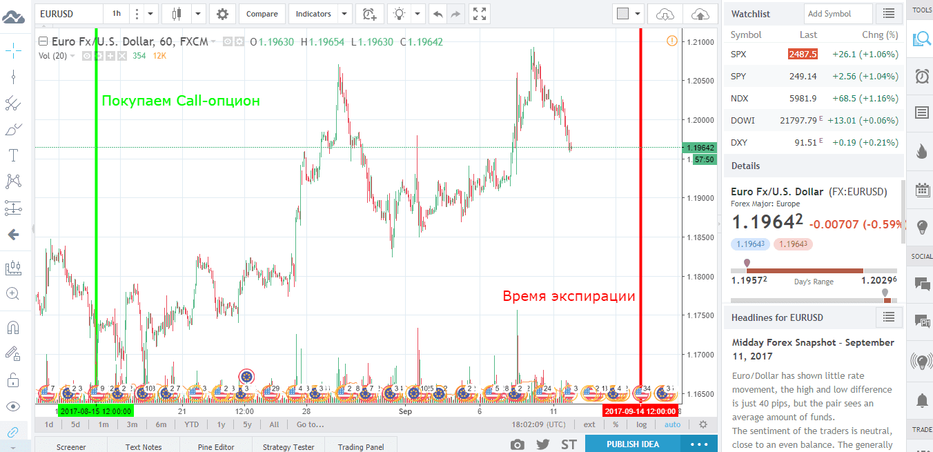 In this case, the maximum expiration date that we can choose is 1 month, since the next monthly report comes out on September 15th. But, most likely, choose the expiration time before the next defining event, that is, news that can strongly shift the market (and not in our favor).