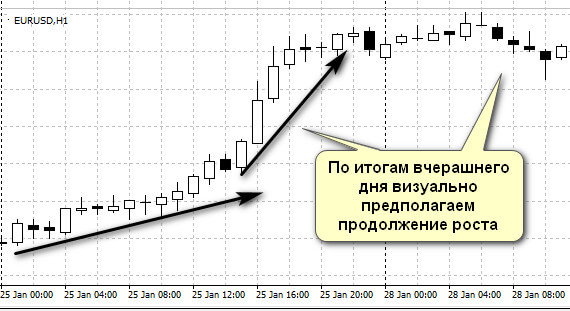 Morning trades of a trader take place at a minimum of information, often the first forecast is wrong and cannot take into account the events that will take place during the day. It can be published political, economic forecasts of analysts or macroeconomic indicators, worse / better than preliminary estimates, etc.