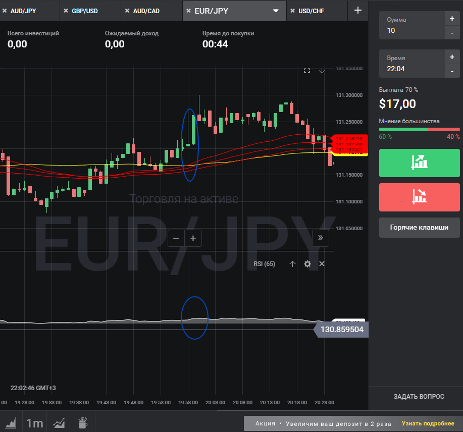 Note that on the one-minute chart, this strategy generates enough signals for novice options traders to open trades. And if you monitor 10-20 currency pairs, then you can dynamically increase your deposit.